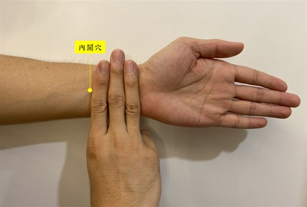 取穴位置:手前臂,掌面側,手腕橫紋上2寸(3手指併攏的寬度)。