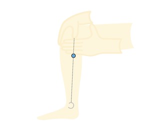 取穴:腿彎曲,膝關節外側有一個凹陷,凹陷沿小腿下3寸(約四指寬),按之痠楚處。