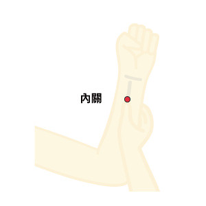 內關穴:手腕橫紋中央往上約3指寬。
