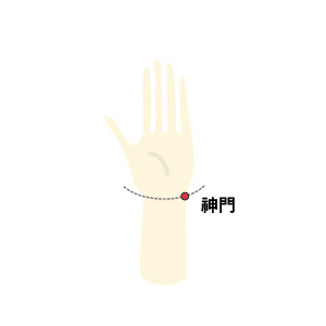 神門穴:手掌與手腕交界處橫紋,靠小指那側的凹陷處。