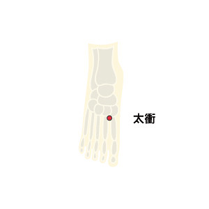 太衝穴:大拇指和第二趾中間,第1、2蹠骨間凹陷處。
