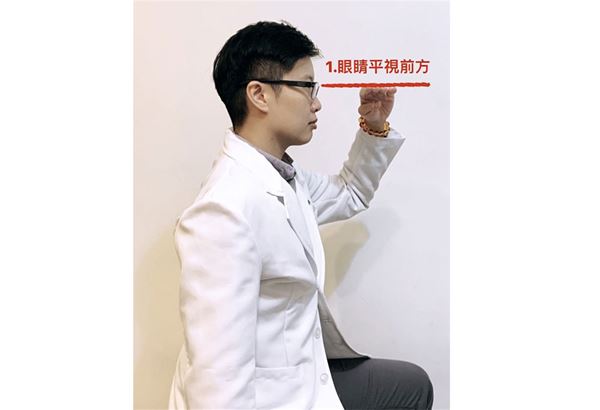4.練習時雙手可以輕輕放在後腦風池、風府處,注意肌肉有沒有被拉展的感覺,還有前頸肌肉是否錯誤過度用力。