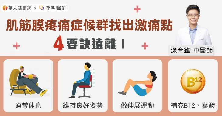 中醫師涂育維表示,遠離肌筋膜疼痛症候群,以下推薦4要訣從日常生活與飲食調整做起: