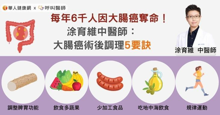 涂育維中醫師表示,中醫對於大腸癌的術後調理,最重要的就是調整脾胃功能,以及需要注意日常生活習慣: