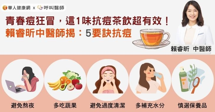 賴睿昕中醫師表示,中醫認為痤瘡的形成起因為臟腑功能失調,再加上後天飲食失衡,而導致火熱上蒸於頭面。