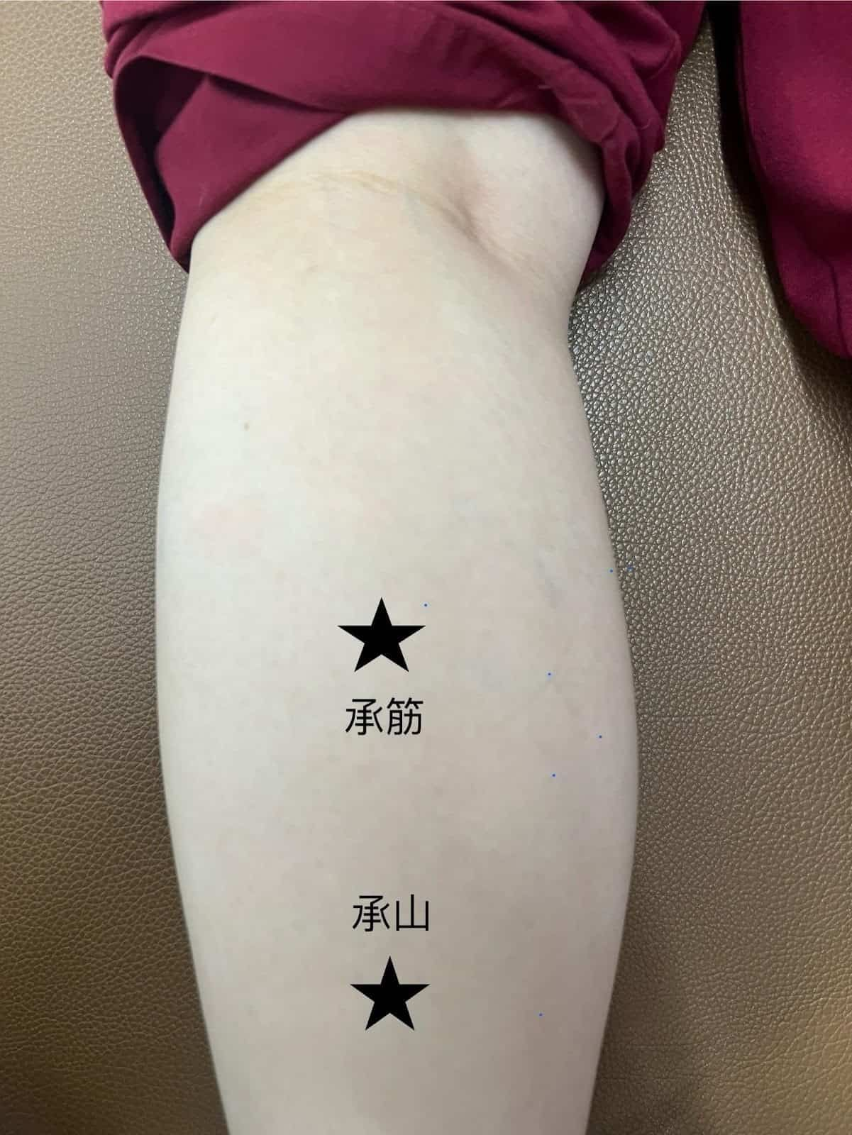 位置:小腿後側,腳跟上約1/3肌肉凹陷處。