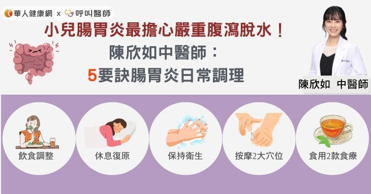 陳欣如中醫師表示,在中醫看來,引起腸胃炎的主要原因是「外邪入侵」或「飲食不節」,讓孩子的脾胃消化功能失去平衡。外邪可以理解為風寒、暑濕等氣候變化;飲食不節則包括吃太多生冷食物、甜食或油膩的食物,造成腸胃超出負荷。孩子的脾胃不像成人那麼強健,所以一旦受傷就容易出現嘔吐腹瀉。